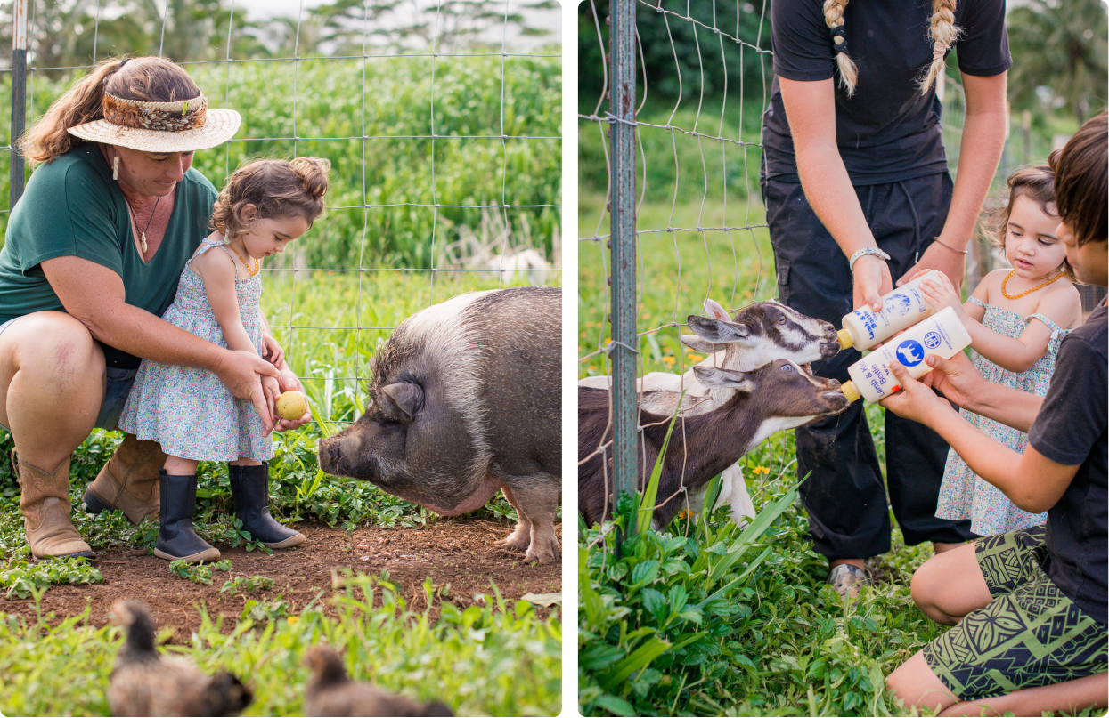One of Christy’s favorite events at the farm are “Ohana Days,” which are dedicated days set aside for local Kauai residents to visit the farm, spend time with their families, and reconnect with the land. This is particularly special for locals whose pets are being cared for at the farm.